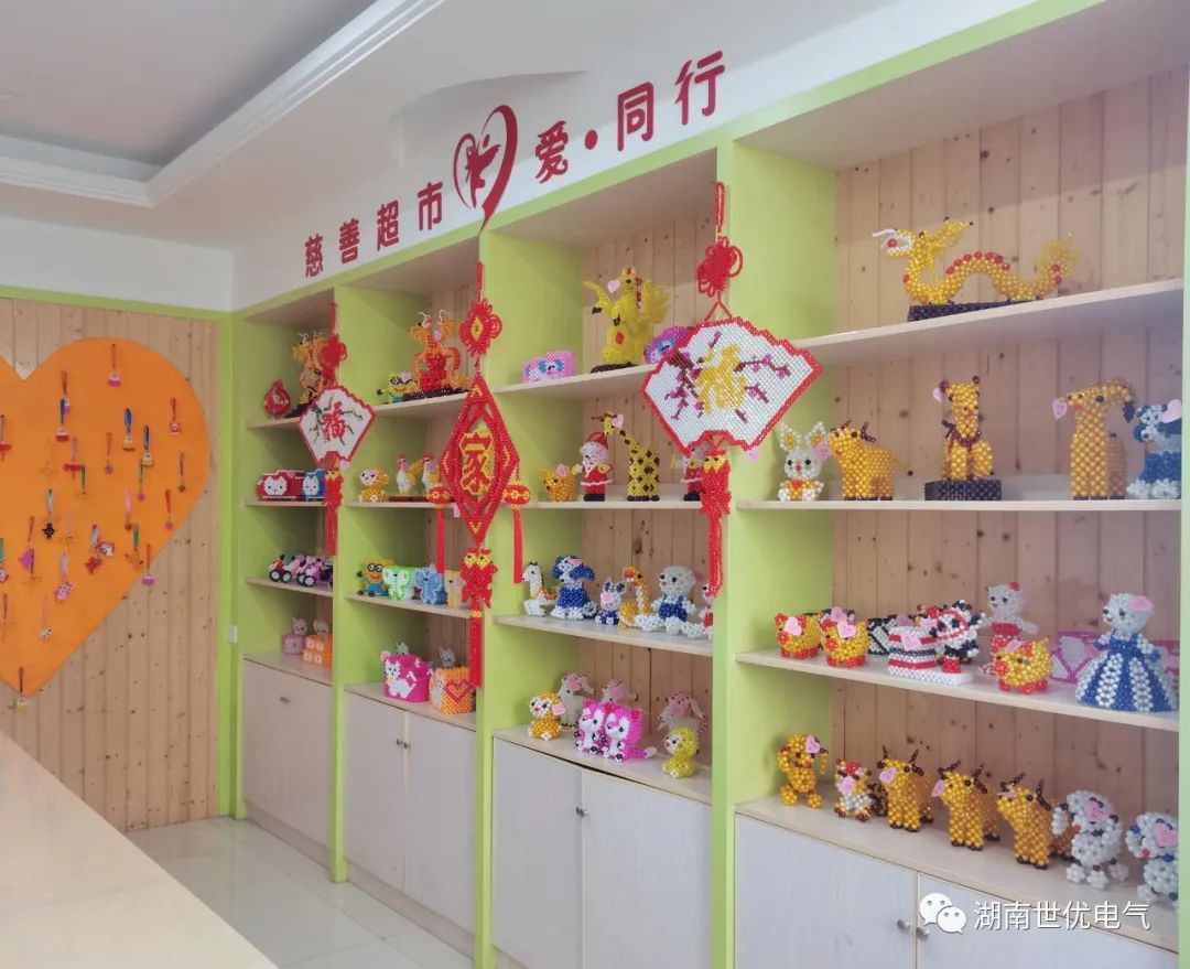 在慰問活動中,福利院劉勇院長首先帶領(lǐng)志愿者成員參觀福利院的活動室、教室、康復(fù)室等場所和設(shè)施,并詳細介紹了福利院的相關(guān)情況。福利院的兒童大多都是殘障兒童,很多孩子都不能正常學(xué)習(xí)生活,全靠福利院老師、治療師盡心盡力、無微不至地照顧??吹胶⒆觽冮_朗、熱情地和志愿者們打招呼,并且積極地向我們展示他們親手制作的手工藝品,志愿者們心中感到非常欣慰,并對福利院老師們?yōu)樘厥鈨和B(yǎng)育、教導(dǎo)、康復(fù)等工作的無私付出表達崇高的敬意。世優(yōu)電氣的黨員干部和志愿者們將慰問物資贈與福利院,并表示有機會還會發(fā)動更多的社會力量關(guān)愛這些兒童,讓他們能夠感受到社會大家庭的更多關(guān)愛。